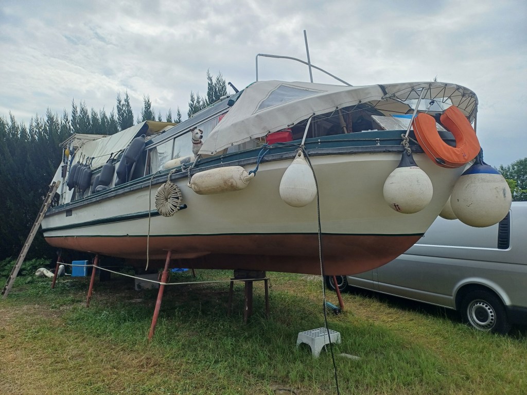Vedette fluviale 1973 de fabrication anglaise du chantier Bounty Boat. Deux accès possibles, par l’avant avec la terrasse baignoire et par l’arrière du bateau. un poste de pilotage sur l’avant. Un salon et cuisine . Il a entièrement expertisé en 09/2024. Bateau a fond plat avec un tirant d’eau de 0.80m idéal pour de la navigation en eau intérieur .