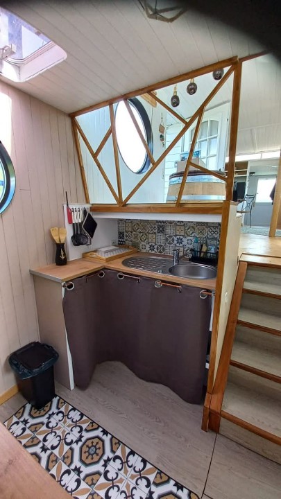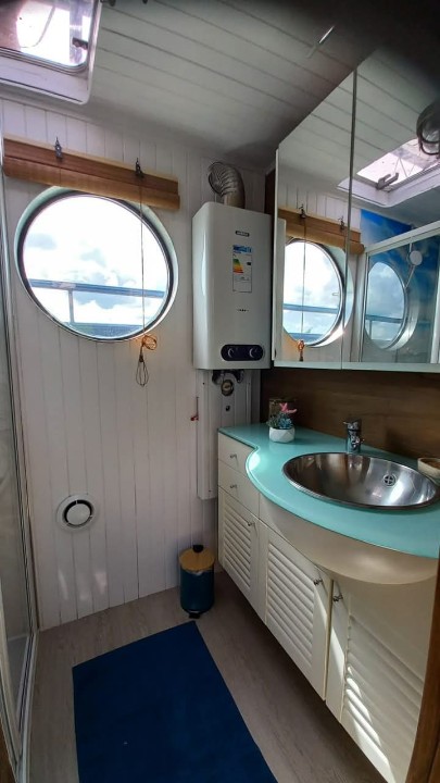 Magnifique House Boat de 2003 configuré en appartement flottant de 66m²avec un ameublement complet, deux chambres, une cuisine / salon , salle de bain douche. Vous pourrez profiter aux beaux jours des deux terrasses dont une qui est équipée d’un spa. Le bateau est actuellement en configuration de location en court ou moyen séjour donc un atout non négligeable La dernière expertise de la coque date de septembre 2024. A visiter.