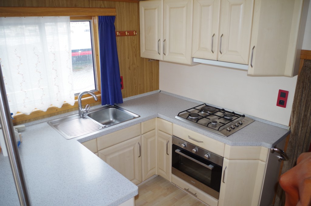 Cuisine / Kitchen : gazinière 4 feux + four électrique, hauteur sous barrot 1.90m