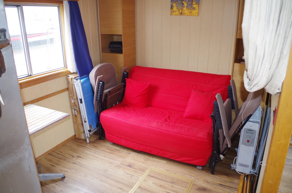 Cabine Centrale / Central cabin: Canapé convertible et un réfrigérateur hauteur sous barrot 1.90m