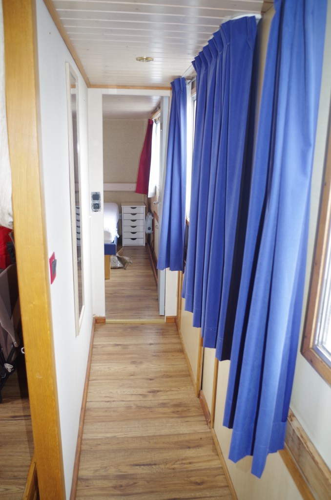 Cabine Arrière / Behind cabin : Lit double 190 x 140 , douche, évier hauteur sous barrot 1.90 m