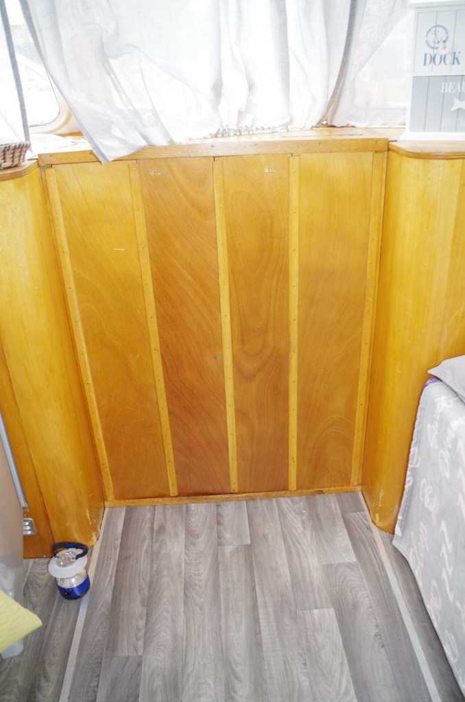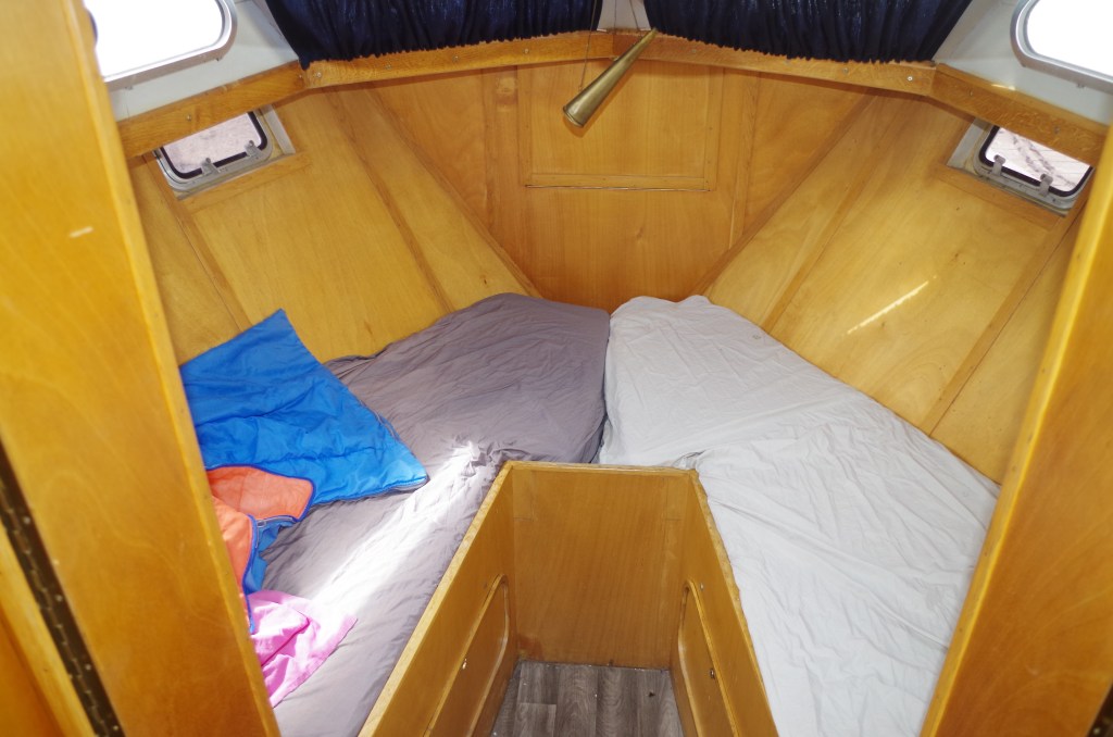 Pointe Avant/ Forward cabin : Cabine fermé, lit en V hauteur sous barrot 1.85m