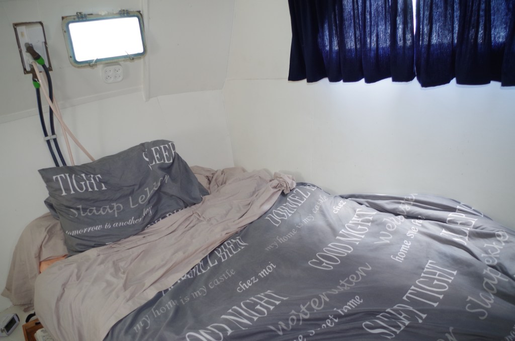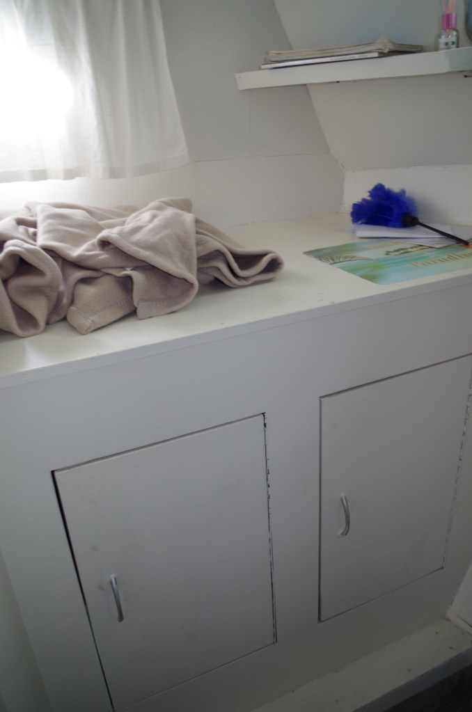 Cabine Arriere / Rear Cabin : 1 lit double 180 x 140, avec rangements hauteur sous barrot 1,85m