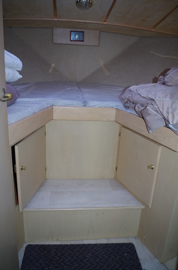 Cabine Avant/ Forward Cabin : Lit en V 180 x 80 hauteur sous barrot 1,93m et 1,80m