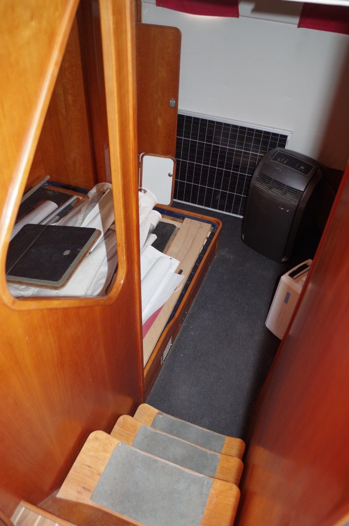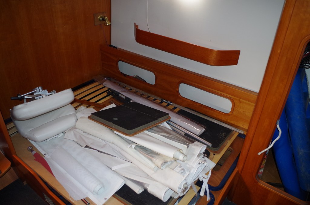 Cabine 1 Avant / Room : Couchette en V 200×66, hauteur sous barrot 1.80 m