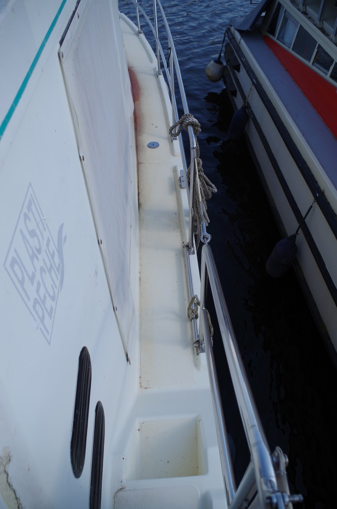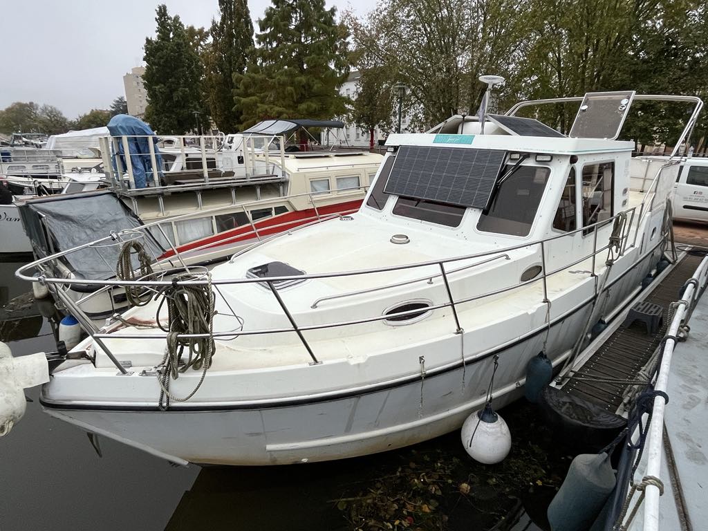 Vedette fluviale de 1992, de construction française du chantier Plasti-pêche. Bon état général du bateau, équipée d’une terrasse de (7m²) de deux postes de pilotage. Un carré lumineux , une cuisine équipée. Ce bateau a subi des évolutions dans le but de le rendre plus confortable pour une vie a bord .La capacité de couchage est de 6 personnes avec 2 cabines lit double, deux cabines de toilette. Climatisation, 3 panneaux solaires, 1 générateur, 1 propulseur, tous ces équipements en font un bateau idéal pour de la navigation en eau intérieur